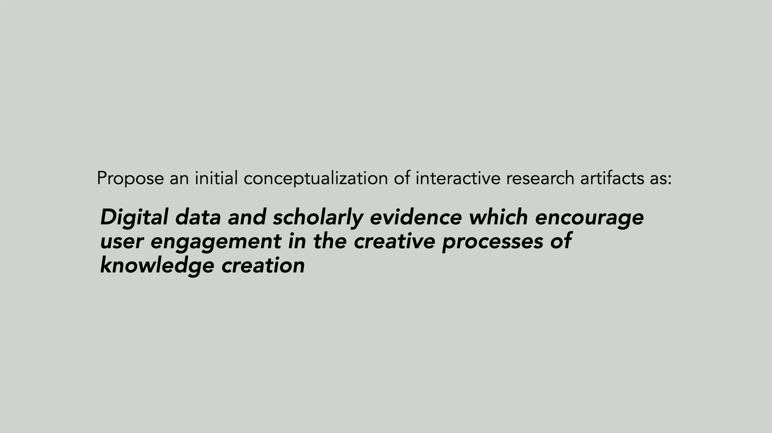 Conceptualizing interactive research artifacts as tools for exploring scholarship as a means of knowledge creation allows for a more nuanced and detailed understanding of their possibilities.