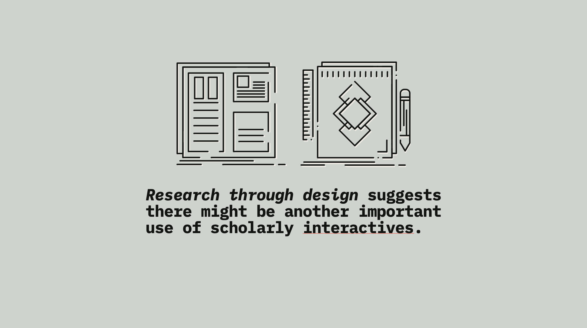 However, this research argues that introducing Design Studies, particularly Frayling’s research through design, uncovers another important use of these scholarly interactives. Specifically, there is minimal work which critically explores the variety of uses of interactive research artifacts in practice, actively omitting the various ways current scholars think about, design, and use these artifacts.